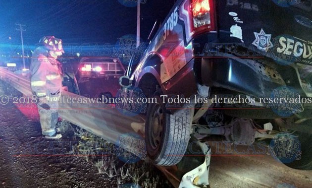 Zacatecas, Zac.- El conductor de una pesada unidad, impacto fuertemente a una patrulla de policía de seguridad vial en hechos ocurridos minutos antes de las siete de la mañana de este lunes sobre el puente vehicular con dirección a Fresnillo frente a ciudad administrativa.
