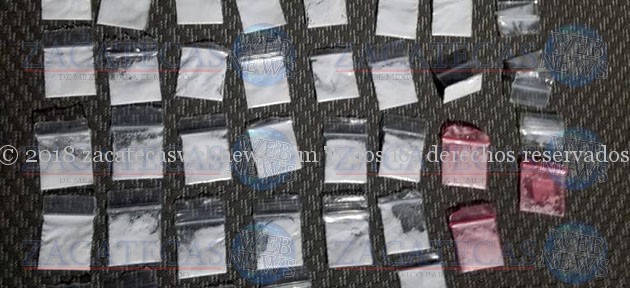 Sin que los dos hombres opusieran algún tipo de resistencia a la revisión, los elementos de la PEP los encontraron en posesión de 34 bolsitas de plástico transparente tipo ziplock, mismas que contenían polvo blanco, con las características propias de la cocaína en polvo.