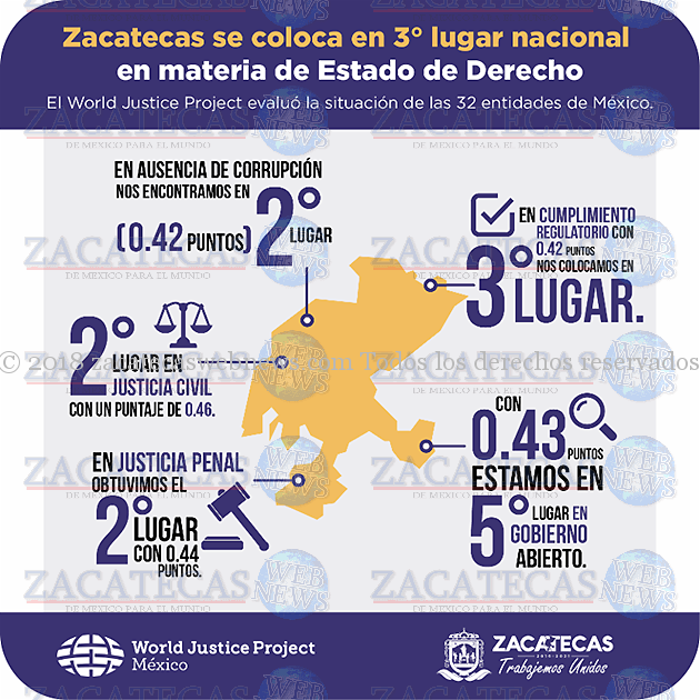 ZACATECAS TERCER LUGAR NACIONAL EN ÍNDICE DE ESTADO DE DERECHO