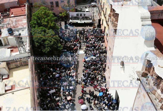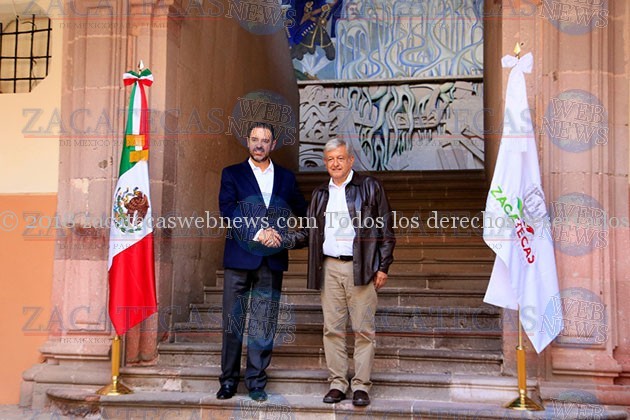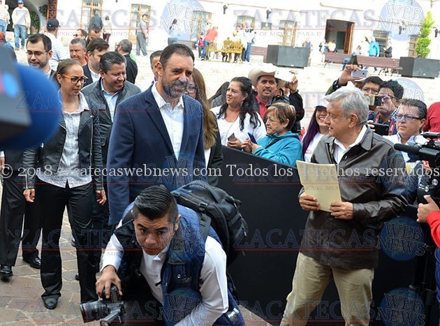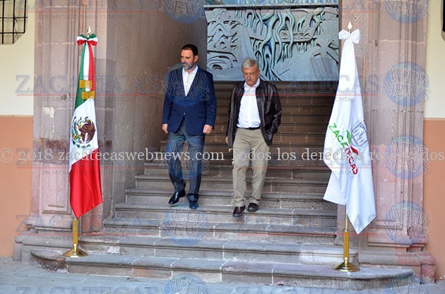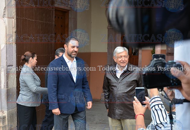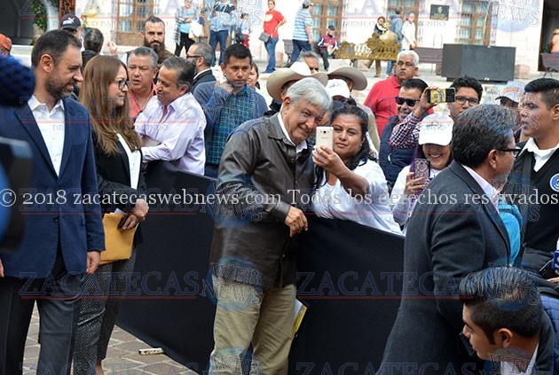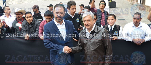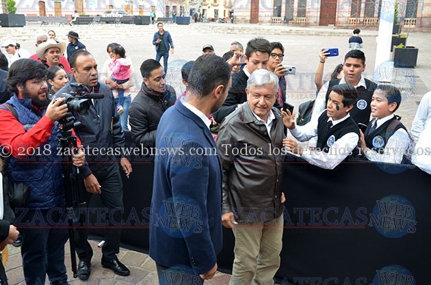Al ritmo de la marcha de Zacatecas, Andrés Manuel López Obrador se dio paso entre la plancha de la plazuela Miguel Auza, donde también se encontraba el presidente de Guadalupe, Julio César Chávez, quien ha estrechado lazos con quien dirigirá el destino del país a partir del primero de diciembre.