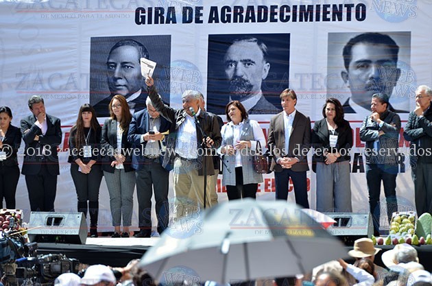 “¡Sí se pudo! Vengo a decirles, que no les voy a fallar, no voy a traicionar al pueblo. ¡Que viva el pueblo de zacatecas, viva México!” manifestó Andrés Manuel López Obrador en su primera visita a Zacatecas como Presidente Electo de México.