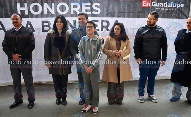 Guadalupe, Zacatecas.- El presidente municipal de Guadalupe, Enrique Guadalupe Flores Mendoza, indicó que en los jóvenes se ha empeñado el compromiso de lograr que Guadalupe Funcione Mejor, durante los honores a la bandera en la escuela secundaria General José Árbol y Bonilla.