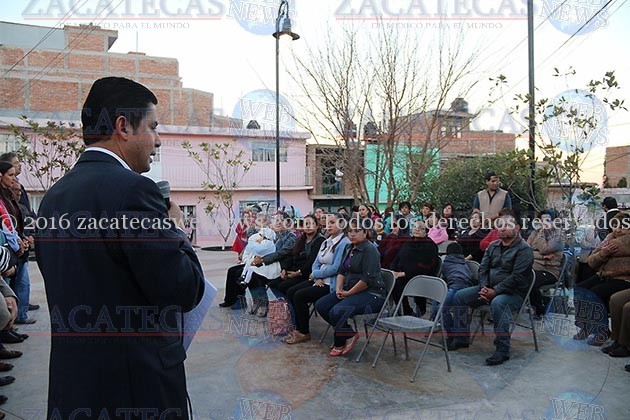 Guadalupe, Zac.- Con una inversión de 634 mil 540 pesos del Programa 3×1 para Migrantes, el alcalde Enrique Guadalupe Flores Mendoza inauguró la rehabilitación de la Plaza de la Mora, obra con la que dio cumplimiento a uno de sus compromisos de campaña.