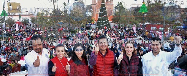 El alcalde Enrique Guadalupe Flores Mendoza agradeció el respaldo del gobernador Alejandro Tello Cristerna y de la presidenta honorífica del DIF Estatal, Cristina Rodríguez de Tello, para realizar este convivio familiar en el marco de las fiestas decembrinas.