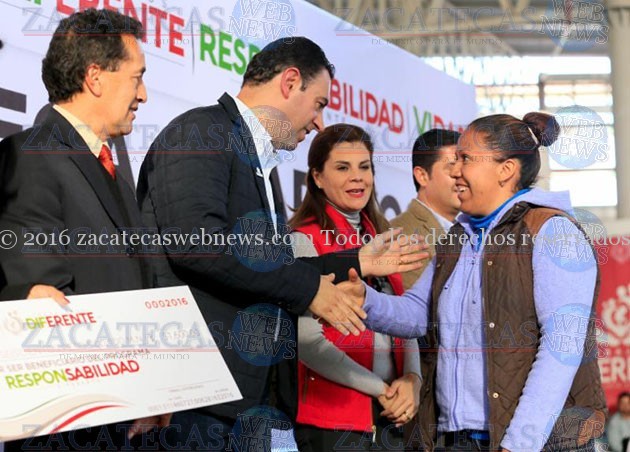 Respecto de los apoyos entregados este día, mediante el Programa Responsabilidad Diferente, se benefició a 5 mil madres jefas de familia a quienes se les da un monto mensual de 400 pesos, con lo cual el Ejecutivo reafirma su convicción de fortalecer las políticas públicas a favor de ese sector, en el entendido que según datos oficiales, en Zacatecas existen 373 mil hogares de los cuales más de 20 por ciento los encabeza una mujer.