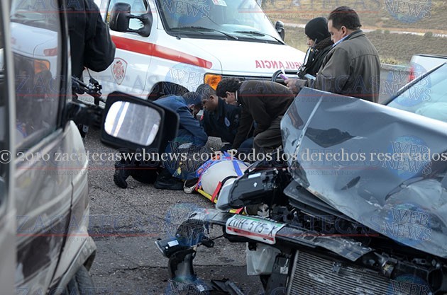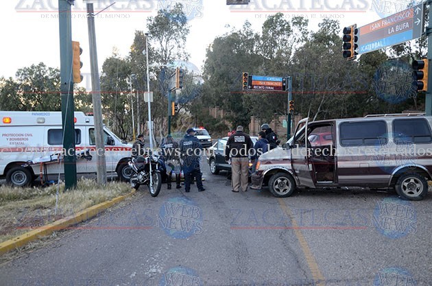 Los hechos ocurrieron en el crucero carretera de la  Bufa y paseo Solidaridad. La acompañante del auto resulto lastimada por el fuerte impacto que recibió, la misma que fue trasladada a bordo de una unidad de Protección Civil a recibir atención médica.