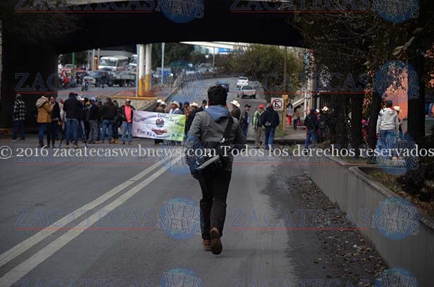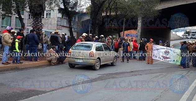 Zacatecas, Zac.- Docenas de campesinos de varias organizaciones, tomaron el Bulevar Adolfo López Mateos minutos antes de las nueve horas de este lunes en demanda de que no se ha llegado a un arreglo sobre el tema de sus carteras vencidas.