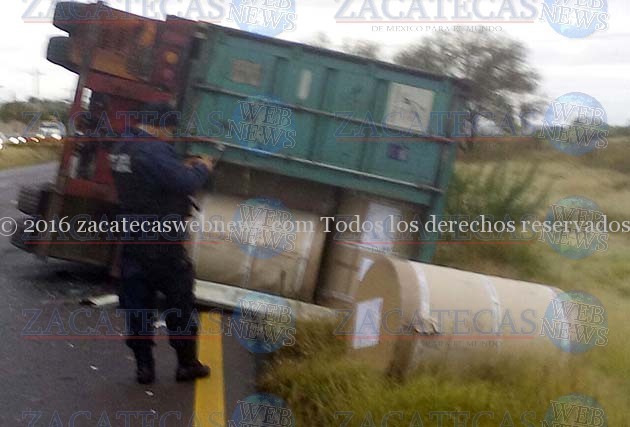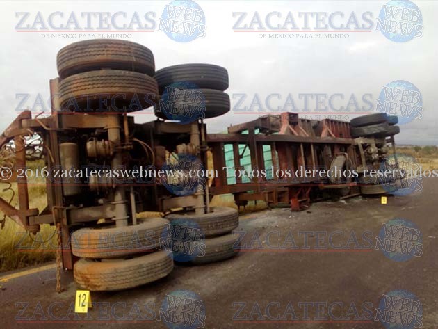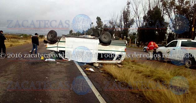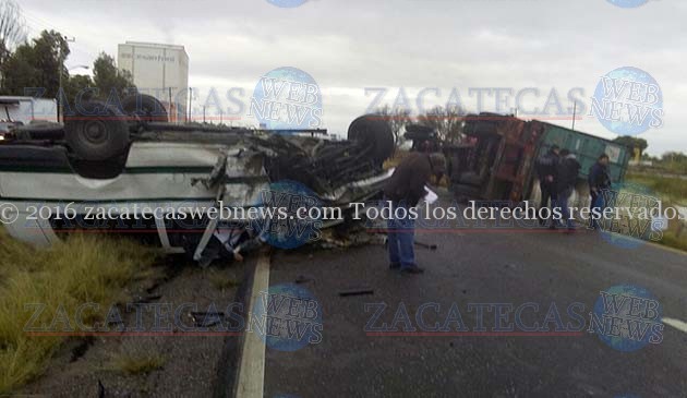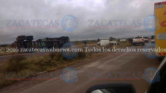 Zacatecas.- Minutos antes de las siete horas de este lunes, 15 personas que se trasladaban a su centro de trabajo en el Instituto Mexicano del Seguro Social (IMSS) en el Mineral de Fresnillo, sufrieron un accidente tipo choque cuando a un tráiler que jalaba dos remolques, se le zafo el último, el mismos que quedo sobre la cinta asfáltica, la unidad donde viajaba el personal del Imss se impactó de lleno contra el remolque. En hechos ocurridos cerca de Calera.