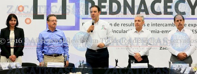 Funcionarios de ciencia y tecnología se reunieron en Zacatecas para participar en el Simposio denominado Presentación de Resultados e Intercambio de Experiencias de la Vinculación Academia-Empresa en IES/CI, de la Red Nacional de Consejos y Organismos Estatales de Ciencia y Tecnología (Rednacecy), el cual fue inaugurado esta mañana por el Gobernador.
