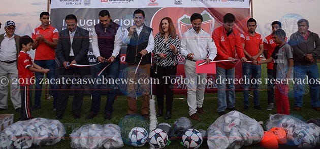 Guadalupe Zac.– Con una inversión superior a los 4 millones de pesos, el alcalde Enrique Guadalupe Flores Mendoza inauguró la 17 Escuela Municipal de Iniciación Deportiva Mineros de Zacatecas y la Cancha II de la Unidad Deportiva de Guadalupe, que constituyen la acción 81 del programa 100 Acciones por un Guadalupe de 100.