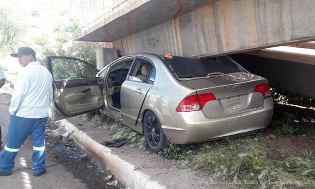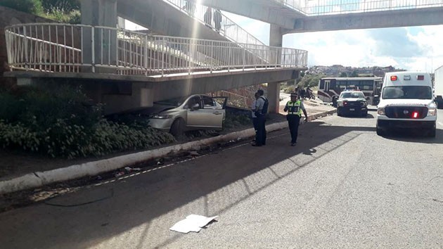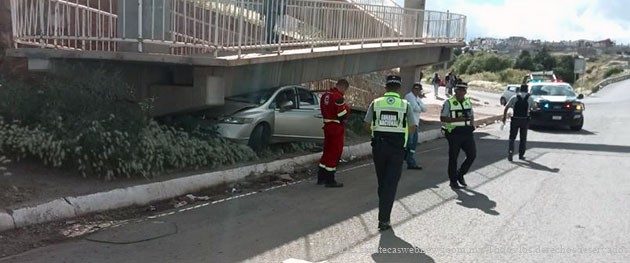 Zacatecas, Zac.- Un accidente se desarrolló cuando una femenina perdió el control de su unidad para impactar contra un puente peatonal ubicado en la colonia CTM sobre tránsito pesado.
