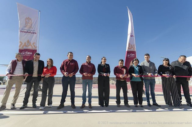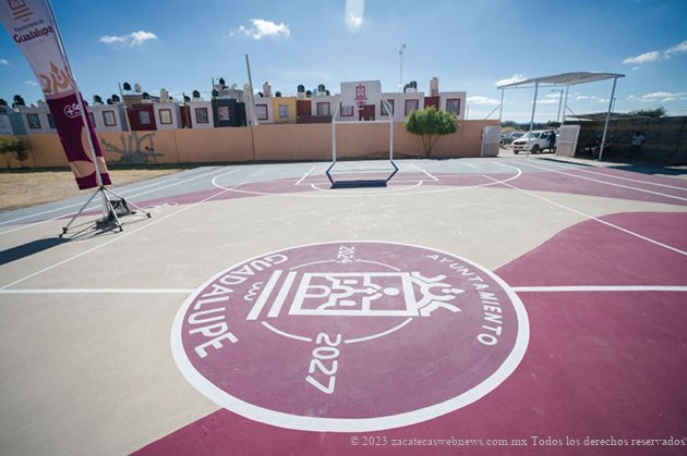 Guadalupe, Zac.– Con el firme compromiso de seguir trabajando por la educación para beneficio de las niñas, niños y jóvenes guadalupenses, el Presidente Municipal Pepe Saldívar hizo entrega de una cancha de usos múltiples en la Primaria Frida Kahlo del Fraccionamiento Valle Dorado,