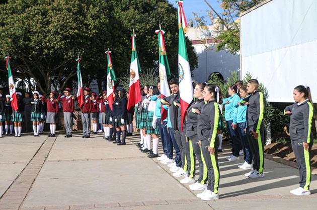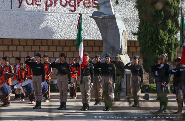 En este importante acto cívico participaron integrantes de 17 secundarias, 8 preparatorias, de la Universidad Sierra Madre, del Pentatlón Deportivo Militarizado Universitario, del Coro Club Margaritas y Jilgueros de adultos mayores del DIF Municipal y de la Asociación de Charros de Guadalupe.