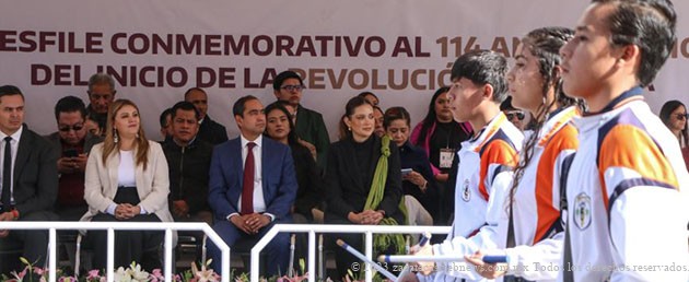 Participaron integrantes de 17 secundarias, 8 preparatorias, Universidad Sierra Madre, Pentatlón Deportivo Militarizado Universitario, Coro Club Margaritas y Jilgueros de adultos mayores del DIF Municipal y de la Asociación de Charros de Guadalupe. “En este 114 Aniversario de la Revolución Mexicana los invito a trabajar en la revolución de las conciencias para el mejoramiento del pueblo”: Pepe Saldívar.