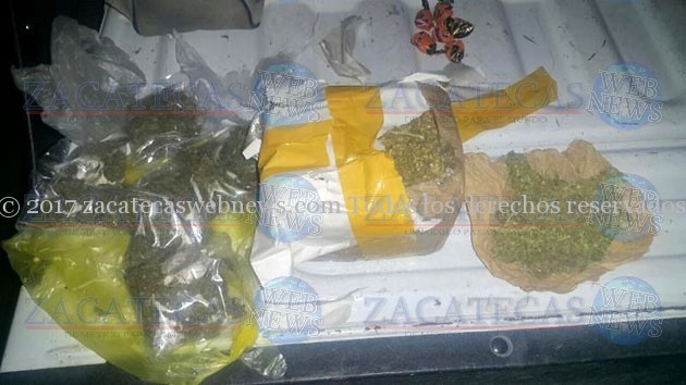 En la comunidad  Zóquite, de Guadalupe, elementos estatales detuvieron a un hombre en posesión de un paquete de papel que contenía vegetal verde y seco, al parecer mariguana, con un peso de casi un kilogramo.