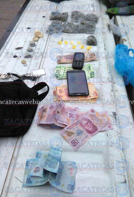 En el detalle, en la zona de tolerancia de la capital zacatecana detuvieron a dos hombres que estaban en posesión de 25 dosis de drogas diversas y 1 mil 500 pesos en efectivo.