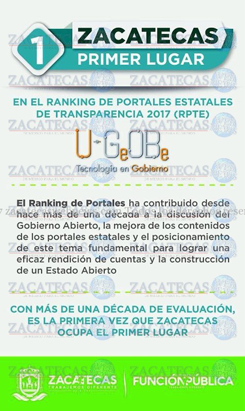 Desde hace más de una década, investigadores y expertos en temas de transparencia realizan dicho ranking, con el objetivo de incentivar la mejora en los contenidos de los portales estatales. Este año, con Alejandro Tello al frente de la administración estatal, es la primera ocasión que Zacatecas ocupa el primer lugar en esa medición.