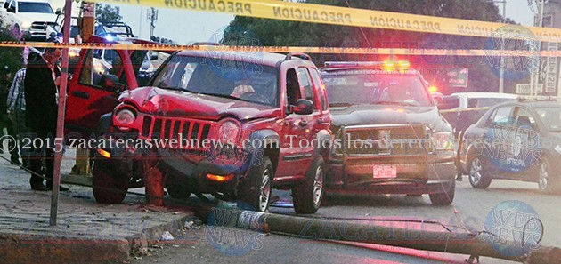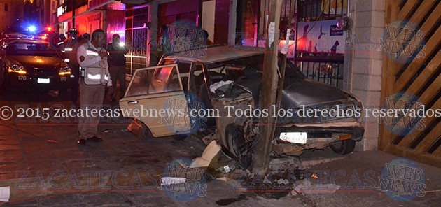 Los hechos ocurrieron casi frente a la facultad de derecho de la Universidad Autónoma de Zacatecas. El conductor mal herido, impacto la unidad contra un poste de alumbrado público derribándolo.