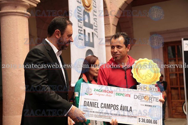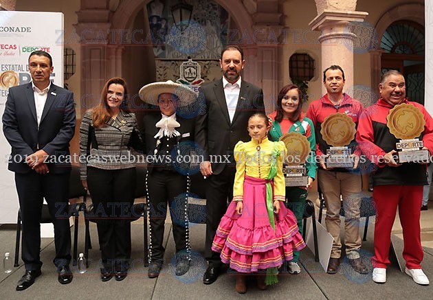 Zacatecas, Zac.-El Gobernador Alejandro Tello reconoció a las y los atletas de Zacatecas, con la entrega del Premio Estatal del Deporte 2019, el cual ganaron la marchistas Ilse Guerrero Rodarte, el entrenador de BMX, Daniel Campos Ávila y al promotor del baloncesto, Bernardo Rodríguez Rentería.