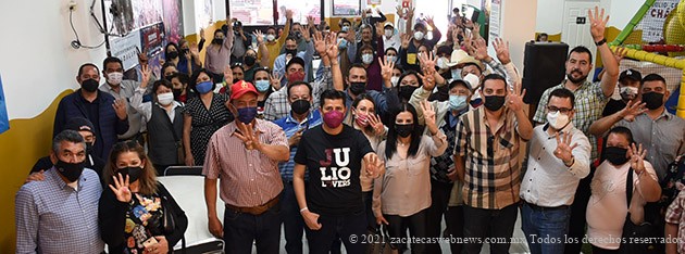 Guadalupe, Zac.- En reunión con distintos liderazgos sociales e integrantes de estructuras, Julio César Chávez Padilla, candidato de Morena a la Presidencia Municipal de Guadalupe, refrendó su compromiso para que la línea de trabajo de la administración 2021-2024 sea el bienestar social de los guadalupenses.