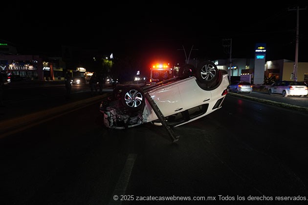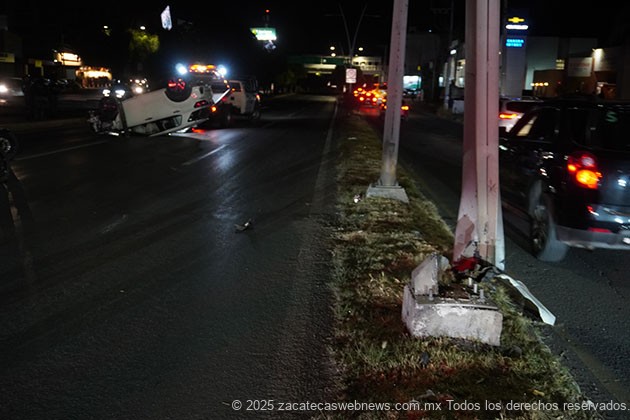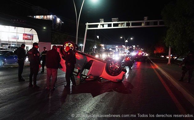 Zacatecas, Zac.- Al filo de las 20:20 horas se registró un accidente de volcadura en el bulevar metropolitano, también conocido como López Portillo.